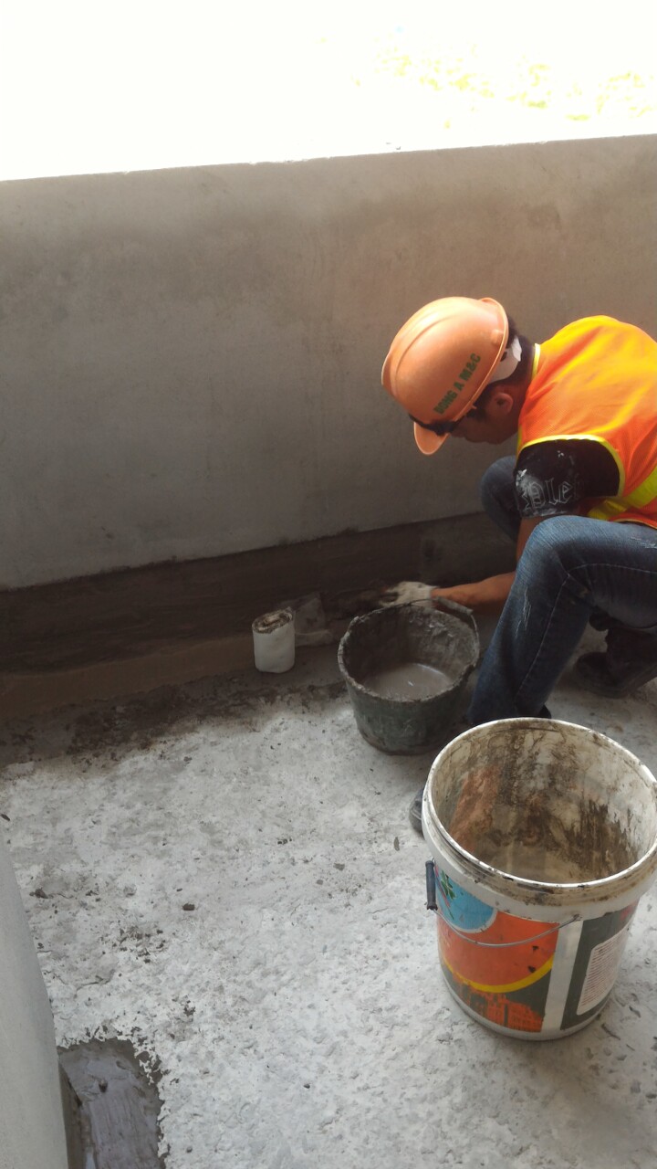 1.Hình ảnh nhân công đang thực hiện quy trình chống thấm.